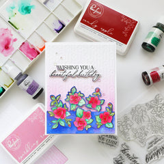 - Die cut Timless Tidings 6 times from white cardstock. Ink blend 6 identical large leaves, and 3 of the smallest leaves, and ink blend in an ombre fashion using Sage, Eucalyptus, and Lush Forest. Ink blend the berries using Ballet Slipper, Passion Fruit, and Berrylicious.