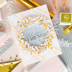 Creating unique holiday cards is all about finding fresh ways to use your supplies, and today I’m excited to share a festive design that highlights just that. Using a leaf die from the Timeless Tidings set, I transformed individual leaves into a full, dimensional wreath with a sparkling shaker center, layered textures, and elegant finishing touches that make this card both joyful and refined.