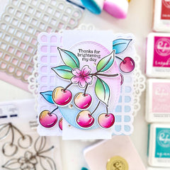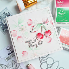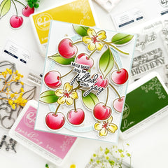 Today, I’m sharing a written step-by-step tutorial for the Cherry Bliss card I made a few months ago during a YouTube Live session on the Pinkfresh Studio channel. If you’re not familiar, we go live every Tuesday at noon CT for a fun, 60-minute cardmaking session—complete with amazing inspiration, lively chat, and of course, giveaways! So don't miss out!
