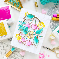 This beautiful cherry-themed stamp set was designed by Kaitlin Sheaffer. It’s perfect for creating cheerful, heartfelt projects. Coordinating products for purchase separately: Cherry Bliss stencil Cherry Bliss die The innovative design has images clustered together on one large stamp, allowing you to stamp all...- $16.00