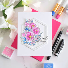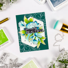 Bring graceful charm to your handmade cards with the Petal Poise stamp set, designed by Inna Moreva. Featuring elegant blooms and leafy sprigs, this set captures the timeless beauty of flowers. Coordinating products for purchase separately: Petal Poise die Petal Poise stencil The innovative...- $16.00