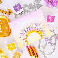 - Stencil 5: Blend with the leftover ink from the brushes used for stencil 1-3 (pink to yellow from top to bottom)