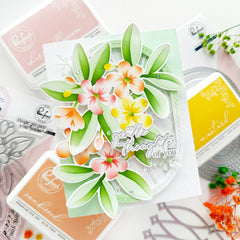 - Stencil 1-3: Marigold, Clementine, Raspberry Bliss - use them (lightly) on different parts of the stencil, blending them where they meet