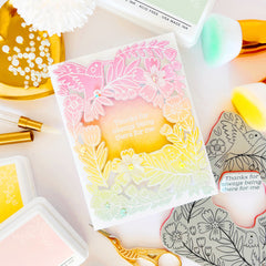 This card took less than 20 minutes to make, but the rainbow ink-blending and dimension give it a big impact. You can easily switch up the color scheme—try a monochrome ombré or a bolder rainbow—or use different stamps. For a fun twist, repeatedly stamp a smaller image to create a background and use the emboss resist technique. The possibilities are endless!
