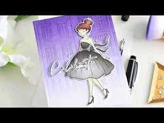 For this card, I used again one of my favorite color palettes - blue and purple to create a fresh and delicate café scene. The interactive slider element adds a playful touch to my card. As the slider is pulled, the building gently rises to reveal a cozy space that feels like a place where you can sit back, relax, and enjoy a heartfelt conversation with your friends. The Darling District suite also includes a variety of sentiments that perfectly complement this warm and welcoming atmosphere.