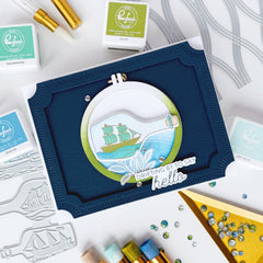 Create a frame for the card by die-cutting the largest die from the Essentials: Notched Corner Frame die set into the same panel.