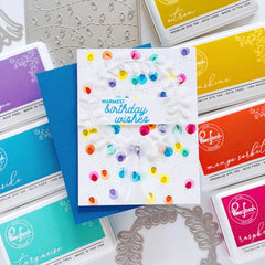 This coverplate die, designed by Kaitlin Sheaffer, brings holiday magic to your projects. Delicate strings of twinkling bulbs weave across your background, adding instant cheer. Layer it over ink-blended backgrounds for a glowing effect that makes your handmade creations sparkle. Coordinating product for purchase...- $21.00