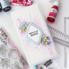 Let your cards bloom skyward with the Rising Wildflowers die and stencil set, designed by Inna Moreva. This tall, vertical bouquet features whimsical wildflower stems rising up the card front, perfect for adding movement and height to your designs. The coordinating die cuts the...- $17.00