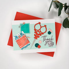 By adding the cute buttons from The Stitch Edit: Notion Story die set to the watercolored background, I was able to bring everything together and create a cohesive sewing-inspired design that feels extra special!
