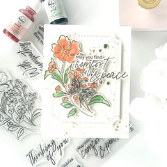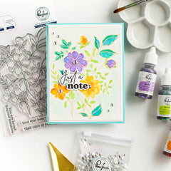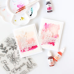 For a cohesive look across the entire design, I used Pinkfresh Studio Premium Watercolor paper not only for the floral images but also for the background and sentiment.
