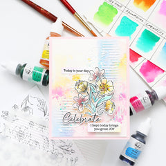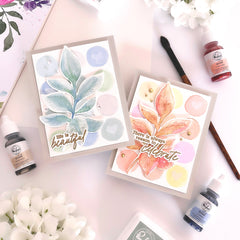 Hi everyone! I hope you’re having a wonderful week so far! It’s TaeEun here today, sharing a watercolored floral card created with our brand new Premium Liquid Watercolors and Premium Watercolor Paper! If you know me, You can probably imagine just how excited I’ve been for this Watercolor release :).