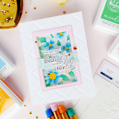 Design striking cards with the Octagon Grid coverplate die. This unique pattern combines bold octagons, diamonds, and dotted details. The structured design works beautifully with florals, sentiments, and layered elements. Create modern shaker windows, elegant tone-on-tone panels, or colorful geometric backgrounds. Your cards will...- $21.00