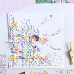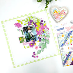- Build the floral clusters. Use Floral Ephemera to create layered floral clusters around your photo. Tuck some florals behind the photo and let others overlap the edges for a natural look.