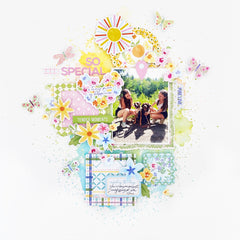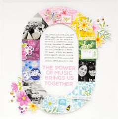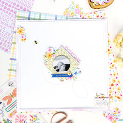 - Add the title and decorative elements . Create your title using the Puffy Alphas and word stickers from the collection. Add small embellishments, bees, labels..to tie the clusters together.