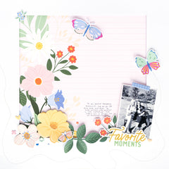 - To create dimension, adhere coordinating floral die cuts on top of the patterned paper using foam adhesive.