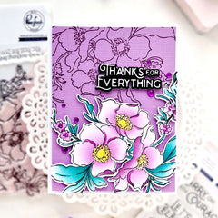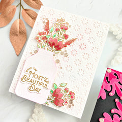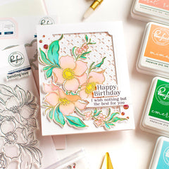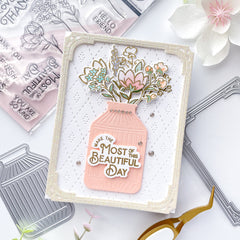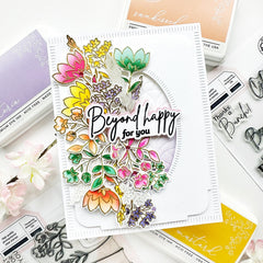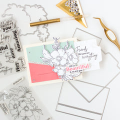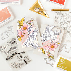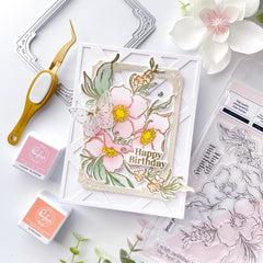 4 x 6 photopolymer clear stamp set designed by Manushree Mishra. Made to coordinate with the Nothing but the Best die set & Nothing but the Best layering stencil set. Available for purchase separately. This beautiful floral cluster showcases three main flowers plus a...- $16.00