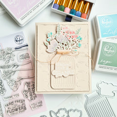 5 pc die set to coordinate with the Farm Fresh stamp set, and Farm Fresh layering stencil set. There is a 1-piece die that cuts the 4 floral stems out with one pass through a diecut machine. There are two vase options and dies...- $24.00