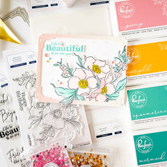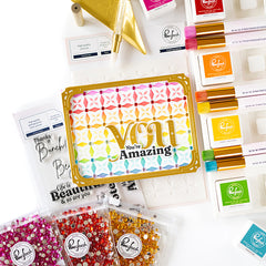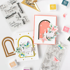 4 x 6 photopolymer clear stamp set designed by Kaitlin Sheaffer. Made to coordinate with the Beyond Happy die set. Available for purchase separately. This 8-piece sentiment stamp set is full of heartfelt sentiments for many occasions! Including birthday, congratulations, thanks & more, your...- $16.00