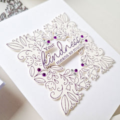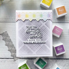 8 pc die set to coordinate with the Favorite Things Sentiments press plate set. There is a die for each sentiment, leaving a thin border. Approximate Measurements: Favorite Things 2” x 2.4”, Thinking of You 2” x 1.5”, Your Kindness 2.25” x 1”, Thank...- $20.00