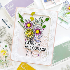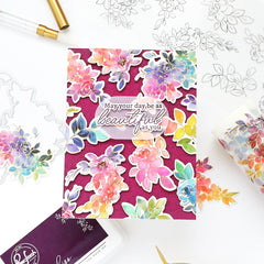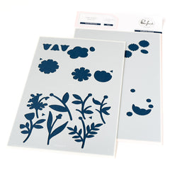 2 piece stencil set made to coordinate with the Stylized Florals die set, available for purchase separately. Easily create your own flower clusters in custom colors using any of our full rainbow of inks by first stenciling the individual floral and greenery pieces, then...- $9.00