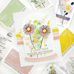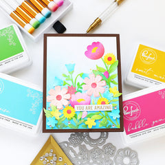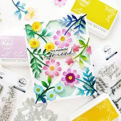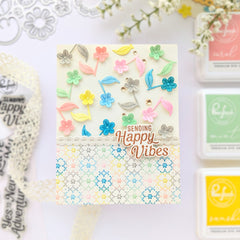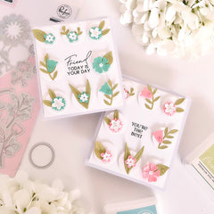 2 pc die set to coordinate with the Sweet Blossoms layering stencil set, available for purchase separately. Easily create your own flower clusters in custom colors using any of our full rainbow of inks by first stenciling the individual floral and greenery pieces, then...- $31.00