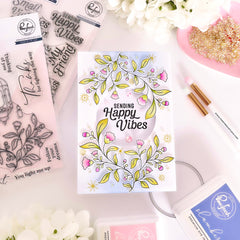 4 x 6 photopolymer clear stamp set designed by Kaitlin Sheaffer. Made to coordinate with the Happy Vibes die set. Available for purchase separately. This 7-piece sentiment stamp set is full of happy sentiments with a just because and thinking of you feel! Each...- $16.00