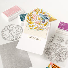 2 pc die set to coordinate with the Stylized Florals layering stencil set, available for purchase separately. Easily create your own flower clusters in custom colors using any of our full rainbow of inks by first stenciling the individual floral and greenery pieces, then...- $26.00