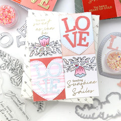 4 pc die set to coordinate with the Heart of Gold stamp set and Heart of Gold layering stencil set. There is a die that cuts the lemon branches, leaving a thin white border. There are also dies for the three scripted sentiments included...- $19.00