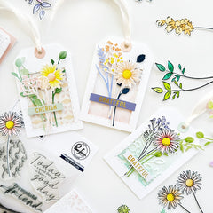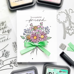 4 x 6 photopolymer clear stamp set designed by Inna Moreva. Made to coordinate with the Wildflower Bouquet die set & Wildflower Bouquet layering stencil set. Available for purchase separately. This versatile stamp set offers four stems of different flowers, enabling you to create...- $16.00