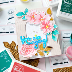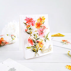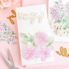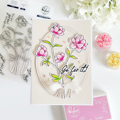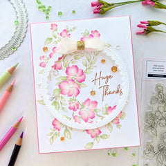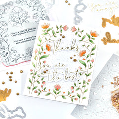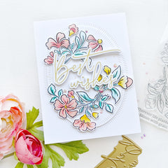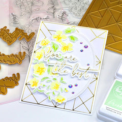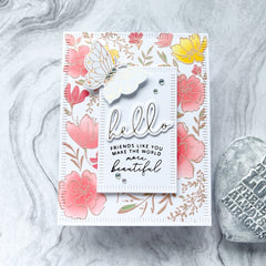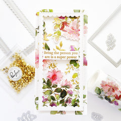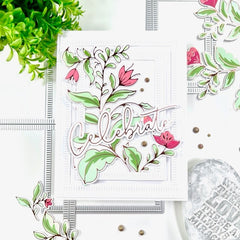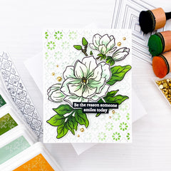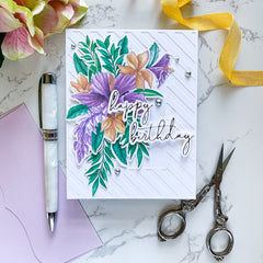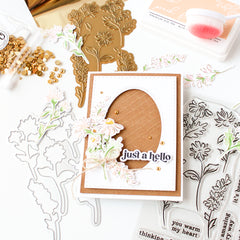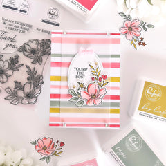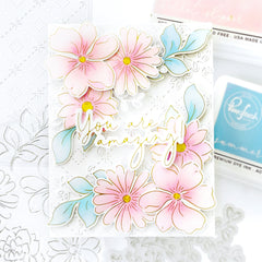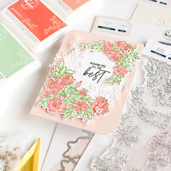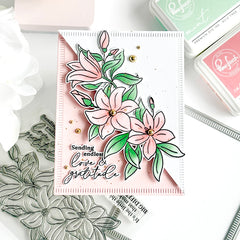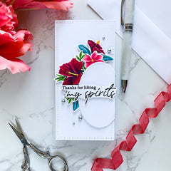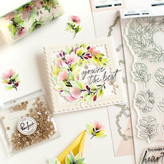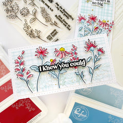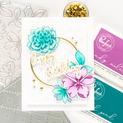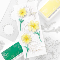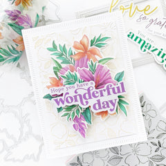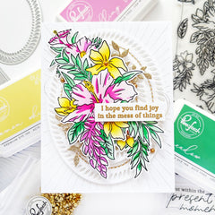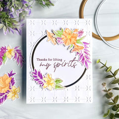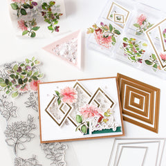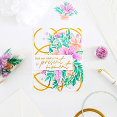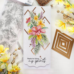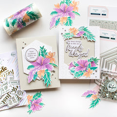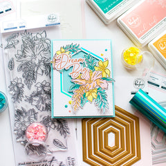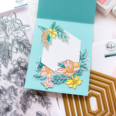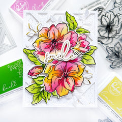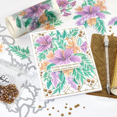 4 x 12 photopolymer clear stamp set designed by Emily Midgett. Made to coordinate with the Hibiscus die, Hibiscus layering stencils and Hibiscus washi tape. Available for purchase separately. This innovative stamp includes all the floral clusters on one stamp, so it pairs perfectly...- $24.00