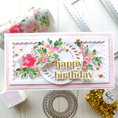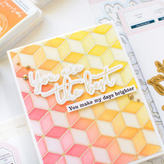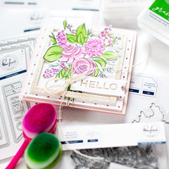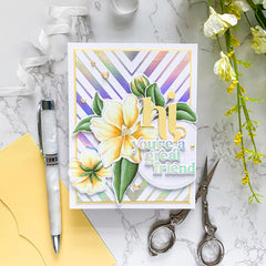 6 piece layering stencil set made to coordinate with the Hibiscus stamp set, Hibiscus die and Hibiscus washi tape. There is a separate stencil for each layer, with guidelines on each stencil for perfect alignment to a 3 ⅝” x 8 ⅝” cardstock panel...- $21.00