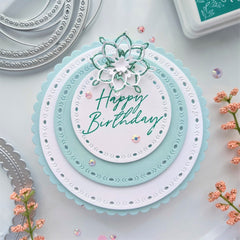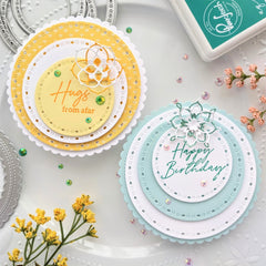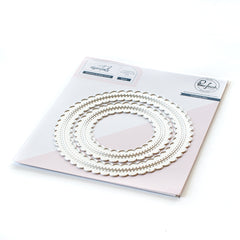 2 piece die set designed as an essential for crafting basics. Cut circle shapes & layers to fit perfectly on many card sizes with a beautiful stitched scallop edge. Each die includes an outer scallop edge, but also includes an inverted scallop inner die....- $12.80