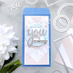 2 piece die set designed as an essential for crafting basics. Cut square panels & layers to fit perfectly on a square card with a beautiful stitched scallop edge. Each die includes an outer scallop edge, but also includes an inverted scallop inner die....- $12.00