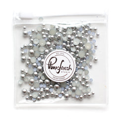 1 pack of Metallic pearls with a matte silver finish in mixed sizes (3mm/4mm/5mm/6mm). Each Metallic Pearl is flat backed, and can be easily adhered to a papercrafting project using liquid glue and a jewel pick or tweezers.- $4.50