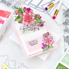 4 x 6 photopolymer clear stamp set designed by Cassidy Demkov. Made to coordinate with the Today is Special die set & Today is Special layering stencil set. Available for purchase separately. This mixed floral bundle will add an enchanting and whimsical feel to...- $16.00
