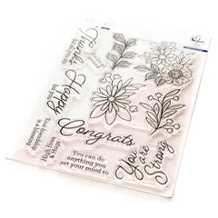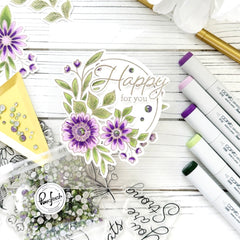 6 x 8 photopolymer clear stamp set designed by Erin McManness. Made to coordinate with the Happy for You layering stencil set, and Happy for You die set. Available for purchase separately. These fun & modern flowers & greenery will be a welcome addition...- $24.00