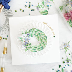 3 pc die to coordinate with the Tuberose stamp set, Tuberose layering stencils and Tuberose washi tape. Due to the nature of its size, you may need extended plates for your diecutting machine, or will have to pass it through twice to diecut entirely....- $23.00