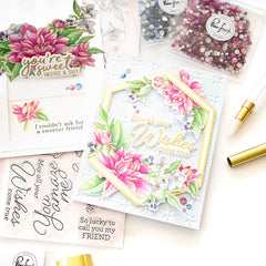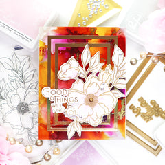 4 pc die to coordinate with the Artistic Dahlia stamp set, Artistic Dahlia layering stencils and Artistic Dahlia washi tape. Due to the nature of its size, you may need extended plates for your diecutting machine, or will have to pass it through twice...- $26.00