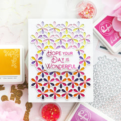 4 x 12 photopolymer clear stamp set designed by Valentine Leclerc. Made to coordinate with the Rainbow Daisies die, Rainbow Daisies layering stencils and Rainbow Daisies washi tape. Available for purchase separately. This innovative stamp includes all the beautiful Rainbow Daisies wreath & clusters...- $24.00