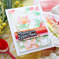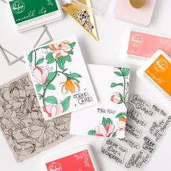 4 x 12 photopolymer clear stamp set designed by Valentine Leclerc. Made to coordinate with the Artistic Magnolias die, Artistic Magnolias layering stencils and Artistic Magnolias washi tape. Available for purchase separately. This innovative stamp includes all the beautiful magnolia bunches on one stamp,...- $24.00