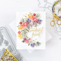 5 pc die to coordinate with the Rainbow Daisies stamp set, Rainbow Daisies layering stencils and Rainbow Daisies washi tape. Due to the nature of its size, you may need extended plates for your diecutting machine, or will have to pass it through twice...- $26.00