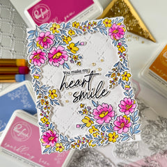 These coordinating stencils will make you feel like an artist, allowing you to quickly and easily color in the image. Use the coordinating die to cut out the design! All that’s left to do is select a sentiment! Coordinating products for purchase separately: Freesia...- $15.00