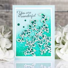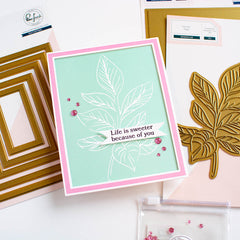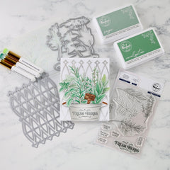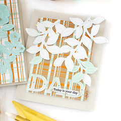 3 pc die set to coordinate with the Delicate Foliage stamp set, Delicate Foliage hot foil plate and Delicate Foliage layering stencil set. The main die cuts around the leafy stem, leaving a thin white border. There are also two dies to cut out...- $20.00