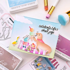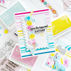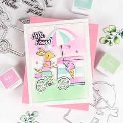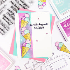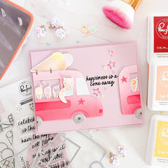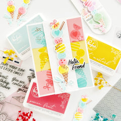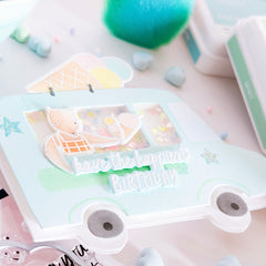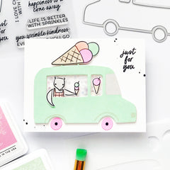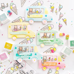 Make sweet cards that feel like summer with this adorable ice cream truck set designed by Lizzie M. Featuring a cheerful vendor, playful cones, and a sprinkle of whimsy, this set adds instant charm. Mix and match elements to build colorful scenes. Coordinating products...- $16.00