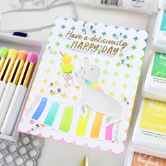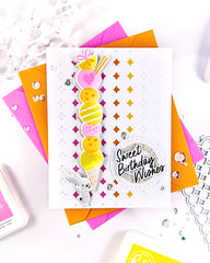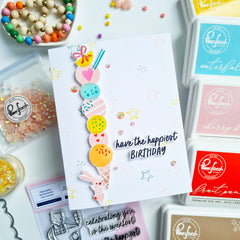 Celebrate big with this extra-tall ice cream cone cutie designed by Lizzie M. Featuring seven whimsical scoops, playful toppings, and an adorable bunny, it's made for joyful cards. Each scoop includes charming details—hearts, sprinkles, and citrus flair. These stencils will make you feel like...- $9.00