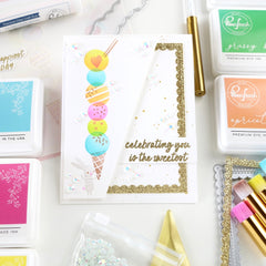 Bring summer fun to your cards with this playful gelato cart designed by Lizzie M. Pair with the umbrella, cone, and bold sentiments for instant charm. You'll craft cheerful scenes that feel fresh, bright, and totally delicious. Coordinating products for purchase separately: Gelato on...- $16.00