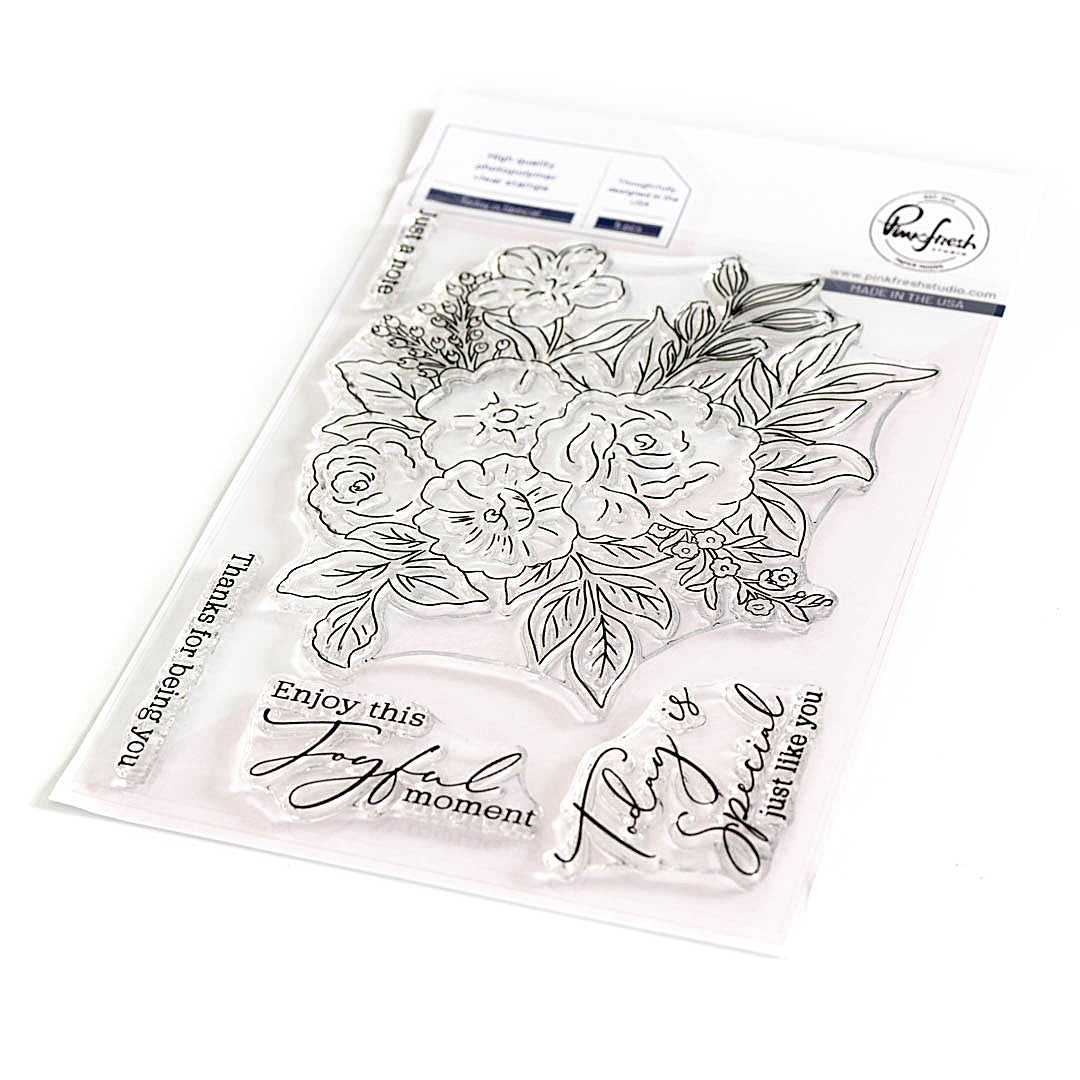 4 x 6 photopolymer clear stamp set designed by Cassidy Demkov. Made to coordinate with the Today is Special die set & Today is Special layering stencil set. Available for purchase separately.