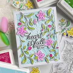 These coordinating stencils will make you feel like an artist, allowing you to quickly and easily color in the image. Use the coordinating die to cut out the design! All that’s left to do is select a sentiment! Coordinating products for purchase separately: Freesia...- $15.00