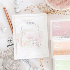 This tea-themed stamp set, designed by Paper Raven Co., is perfect for tea lovers. The centerpiece of this collection is a stenciled charming teapot adorned with delicate flowers. A sweet bluebird perches gracefully, adding a whimsical touch. Coordinating products for purchase separately: Steeped in...- $16.00
