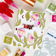 1-piece die set that coordinates with the Kindness in Bloom stamp set, Kindness in Bloom stencil set, and Kindness in Bloom press plate. All images have been merged into one piece to make it easier to die cut. Line up the one-piece die to your...- $16.00